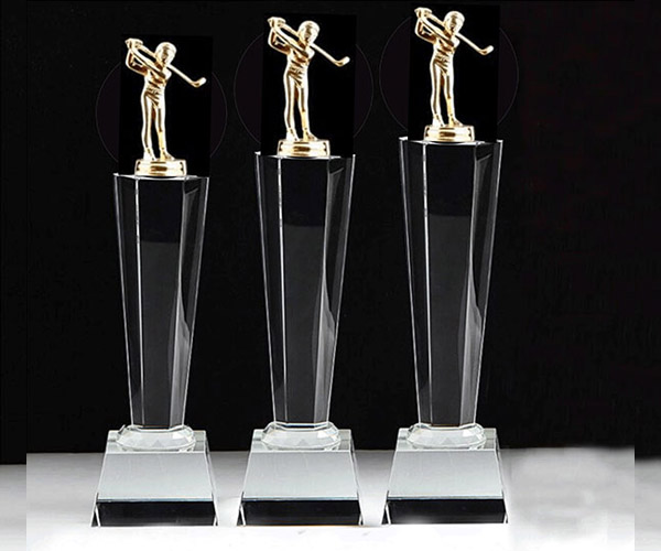 Người đánh golf làm từ kim loại mạ vàng là biểu tượng trên đỉnh của cúp pha lê đẹp CPL 12. Cúp có 3 kích thước là 27cm, 29cm và 31cm làm quà tặng kỷ niệm cho giải đấu hoặc trao giải. Thân và đế cup làm từ pha lê cao cấp độ tinh khiết cao, trong suốt.